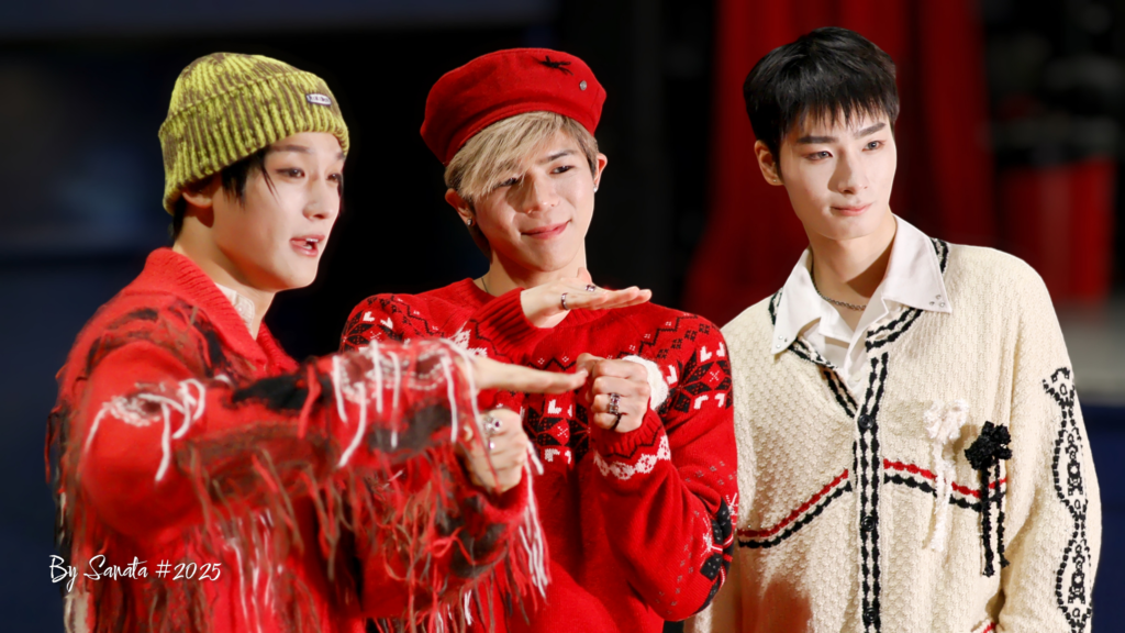 ▶︎ Concours de la plus belle tenue de Noël, dress code officiel de la soirée annoncé en amont du show. Les Pado ont joué le jeu à 200%, transformant la salle en véritable marché de Noël version K-Pop : lumières, nœuds, paillettes et créativité sans limite.